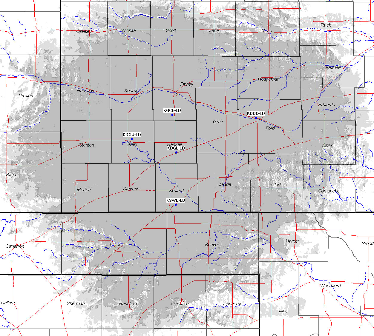 This map represents High Plains Broadcasting's Digital TV coverage for Southwest Kansas.